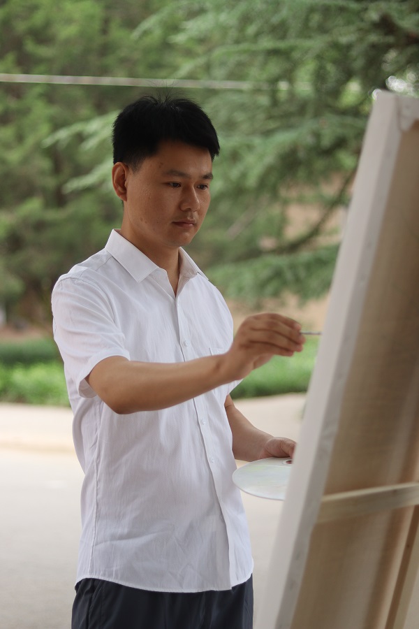 百年大计,教育为本。习近平总书记围绕“中华优秀传统文化进校园”发表了重要论述,培养具有“文化自信”的社会主义接班人。作为一名高校教师的他,2018年在学院与系领导下,成立版画工作室,作为版画工作室负责人的他一直铭记党的教育方针与理念,把国家级非物质文化遗产“年画”带入一线课堂。他是国家艺术基金的受益者,也是非遗进校园的践行者。2018年,经层层筛选,他被国家艺术基金“中国传统版画创作创新人才培养”项目录取,在广州美术学院系统的学习了中国传统版画雕版印刷技艺,学习期间从理论到技法由国内一线雕版印刷专家进行授课,他在雕版印刷的学习中种下了文化自信的种子。学成归来,他将传统雕版印刷技艺“年画”融入高校《版画》、《装饰画》、《丝网印刷》、《包装设计》、《书籍装帧》等课程中,让“非遗进校园”课程思政教育融进高校,让更多的大学生去践行非遗的传承和创新应用。