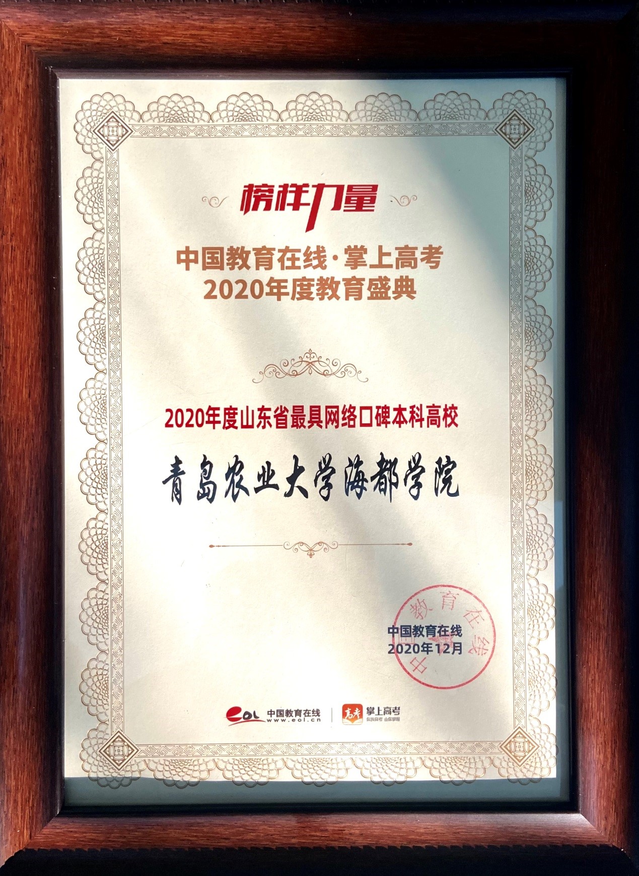 近期,在中国教育在线 “2020年度教育盛典”评选中,太阳成集团tyc4633荣获“2020年度山东省最具网络口碑本科高校”荣誉。