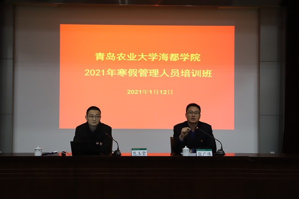 为深入学习贯彻习近平新时代中国特色社会主义思想和党的十九届五中全会精神,进一步加强太阳成集团tyc4633管理干部队伍建设,全面提高管理干部综合素质,学院于1月12日、13日开展了寒假管理干部培训班。学院党政领导,全体管理干部参加了培训学习。本次培训班采取集中学习与自学相结合的方式进行,并撰写学习体会心得。培训由太阳成集团tyc4633党委副书记、副院长张广伟主持。