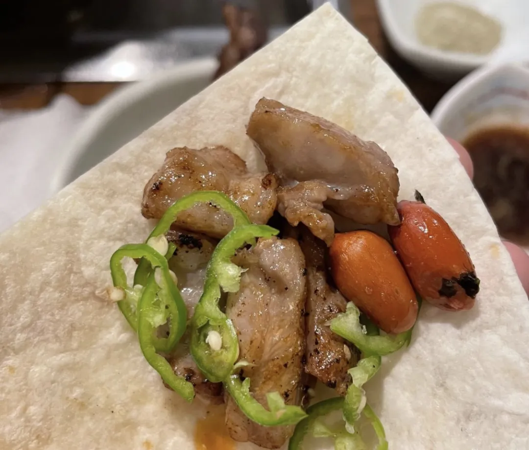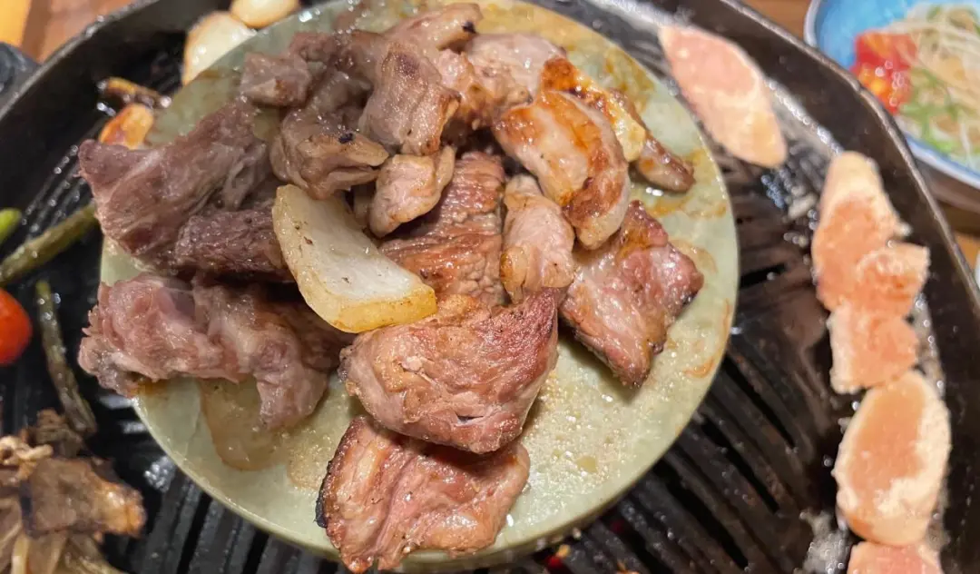 “还有釜山大学附近的那一顿烤肉,可算是爬了15分钟的坡,来到的这家小店,石板烤肉油烟比较少,全程都是有人负责烤肉,慢慢等待,黄油加羊肉,更加丰富了肉本身的口感...”