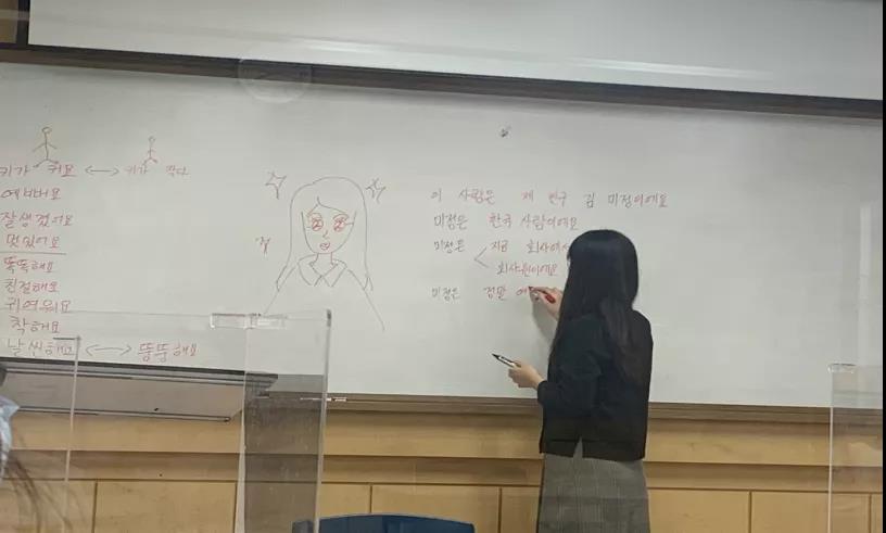 语学院周一的课程有三次都是在公休日期间,所以周一的课程需要再补上几个周,但是周二和周四的课程还要两周左右就结课了,感觉时间过的太快啦!语学院的课程真的很有意思,美女老师画画也超级可爱,所以我感觉课程还没上够,还想继续学习语学院的课程。中文系教授给我们上课的内容比较难懂,但是有时会通过讲解歌词的方式进行讲课,哈哈,这种形式感觉很新颖。一边听歌曲,一边学习,课程上的很轻松很愉快!