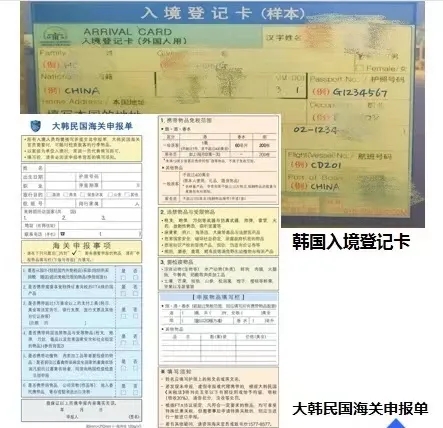 在飞机上的时候漂亮的空姐给了许多单子让我们填,填写一些个人信息及其一些注意事项,比如注意飞机上限制的一些物品,香烟,香水之类的。当然,韩国入境也不能携带肉制品、水果、种子等加工产品(具体可以参考海关申报单上的内容)。因为忘记拍登记卡以及申报单的照片,下图是我在网上搜索的图片。这些单子一定不能丢,下飞机时要随时准备好。