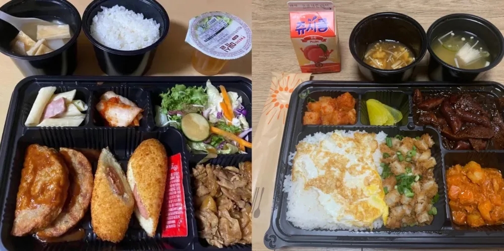 在之后的宿舍隔离生活中,学校早上中午下午都会按时给我们送来早中晚饭,非常的准时,同时饭菜营养也均衡搭配。