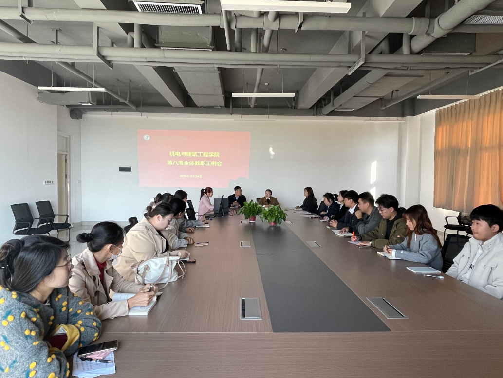 10月24日上午,机电与建筑工程学院在3C301会议室召开第八周全体教职工例会。学院党总支副书记赵洪校、副院长蒋大园出席会议,全体教职工参会,会议由蒋大园主持。