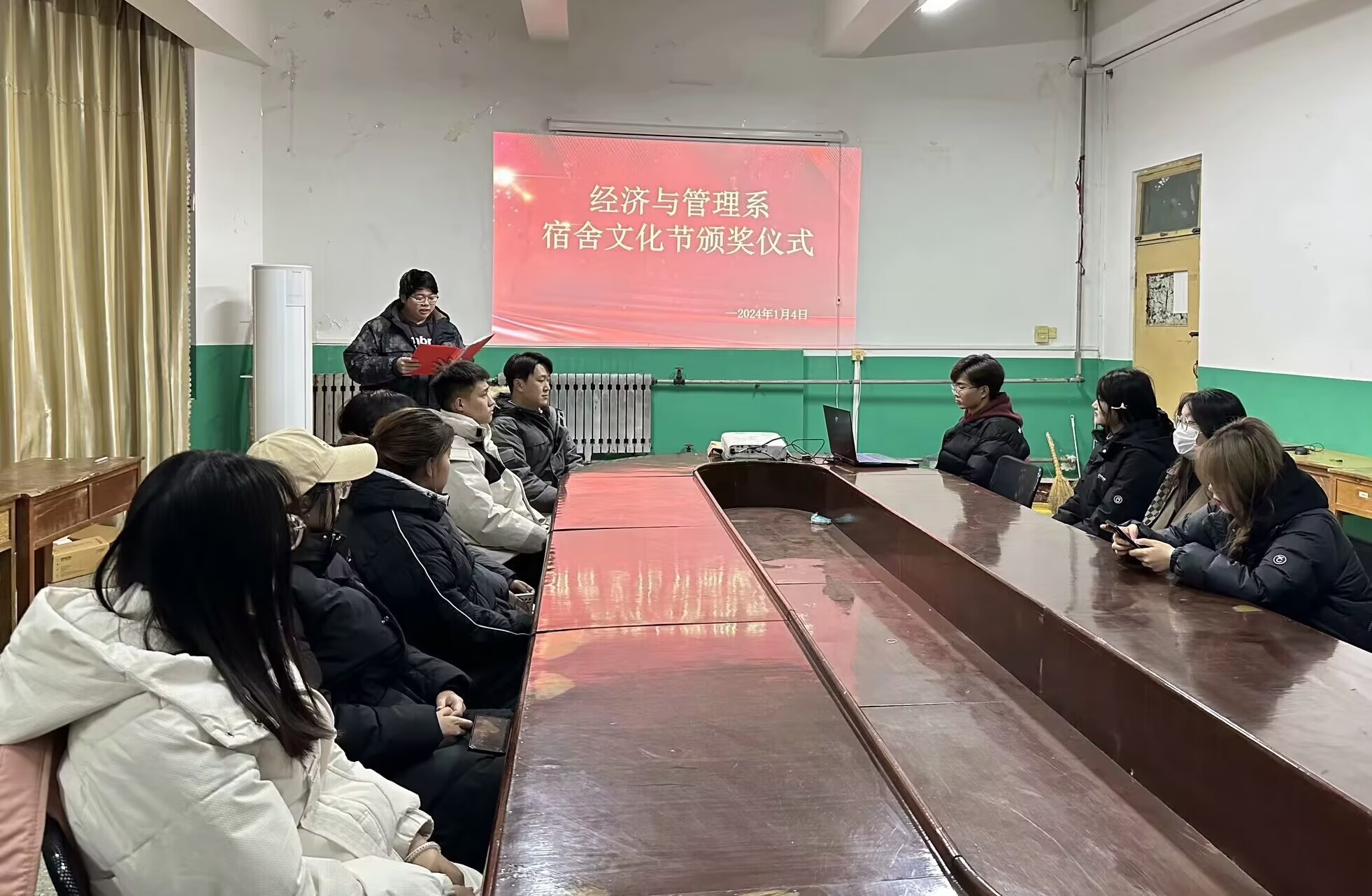 1月4日,经济与管理系2023年宿舍文化节颁奖活动在6号楼226举行。党建负责人李春、辅导员张引恒,获奖集体和个人参加本次活动。