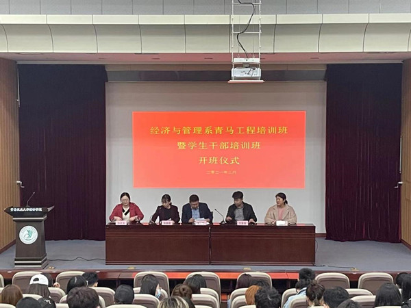 3月24日晚,经济与管理系在二号楼报告厅举行了“青马工程”培训班暨学生干部培训班开班仪式。系党总支副书记姜震,系学工办主任、团总支书记王嘉瑞,梁晓辉、位正玉出席了会议,全体“青马”班成员、学生干部参会,会议由副科级辅导员周晓颖主持。