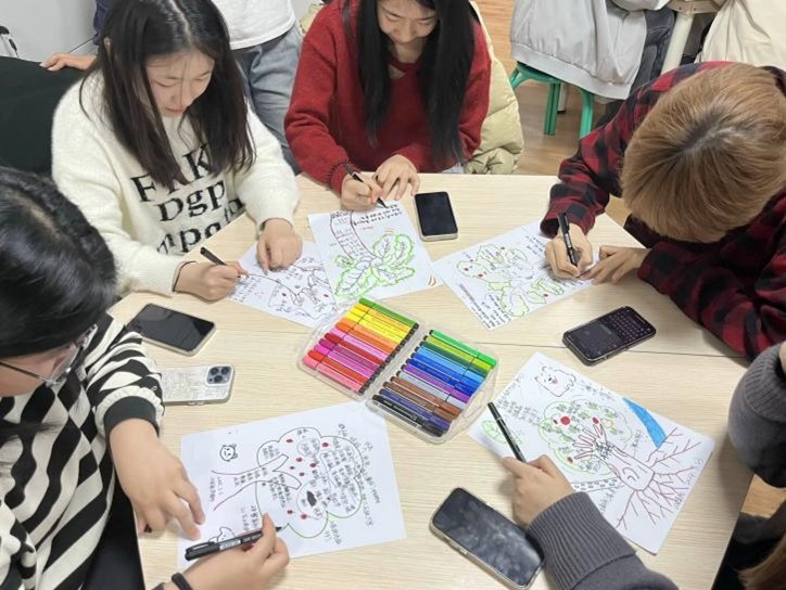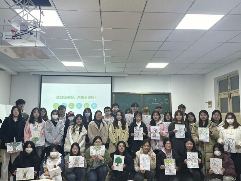 活动现场,张震以“把握生命”“回顾过去,绘出我的生命树”“展望未来,为生命增添色彩”为主题给大家讲解了“生命树”的绘制方法和意义。让学生们借助树的原型,绘制树根、树干、树枝、果实,从而引导学生呵护生命、珍惜生命、热爱生命、探索生命、敬畏生命。完成绘制后,同学们纷纷向小组成员分享了自己的“生命之树”,分享自己的生命历程,现场气氛热烈。