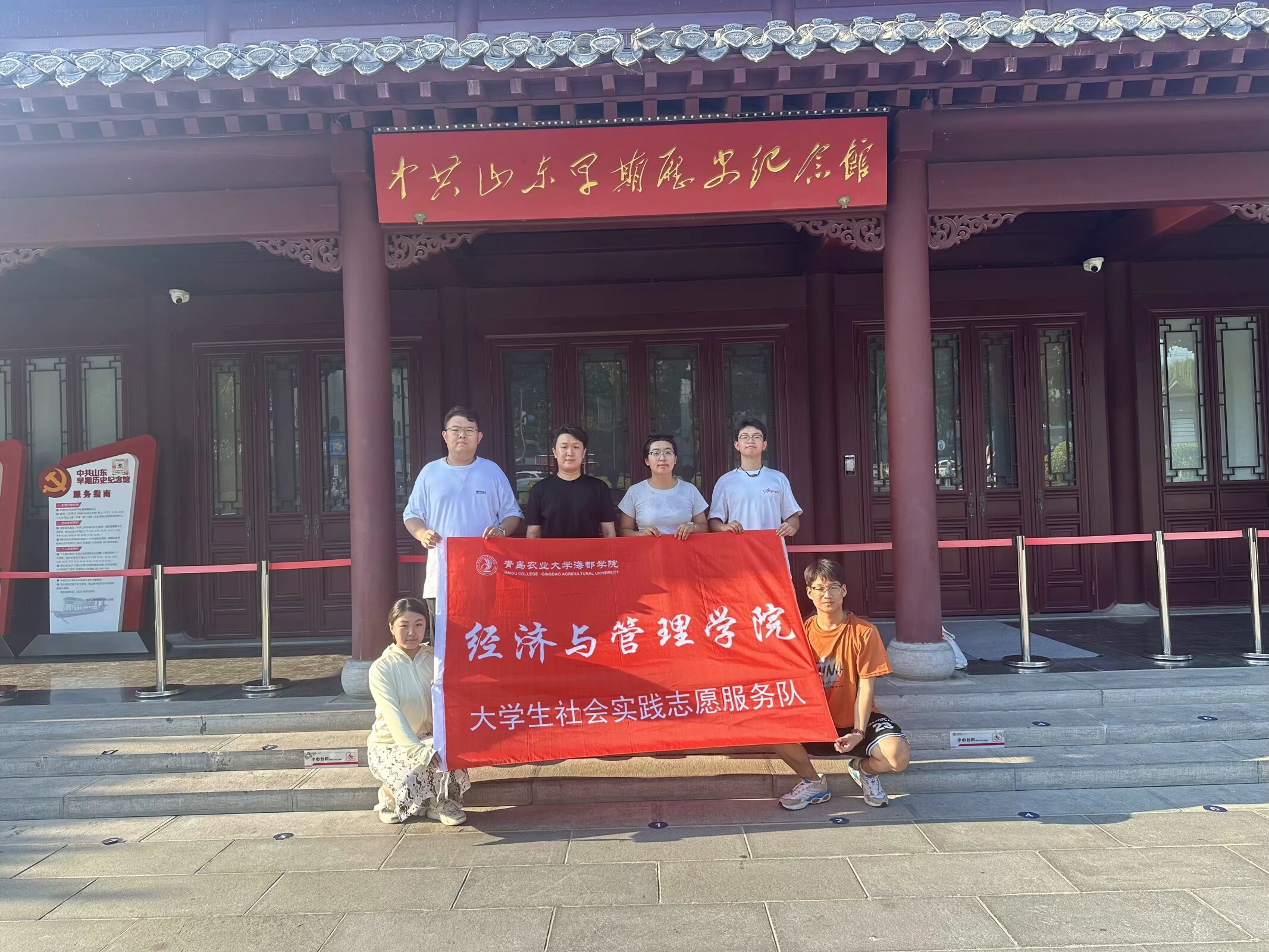 为增强学生的社会责任感和实践能力,深入红色文化教育和革命精神的传承,8月1日—3日经济与管理学院“坚定信仰,指引前行之路”社会实践团赴济南开展暑期三下乡社会实践活动。