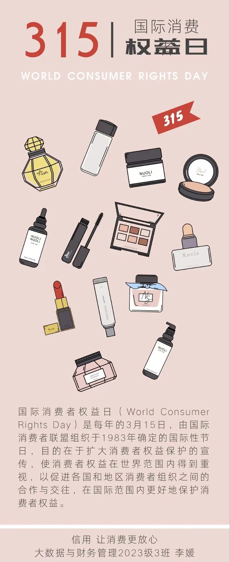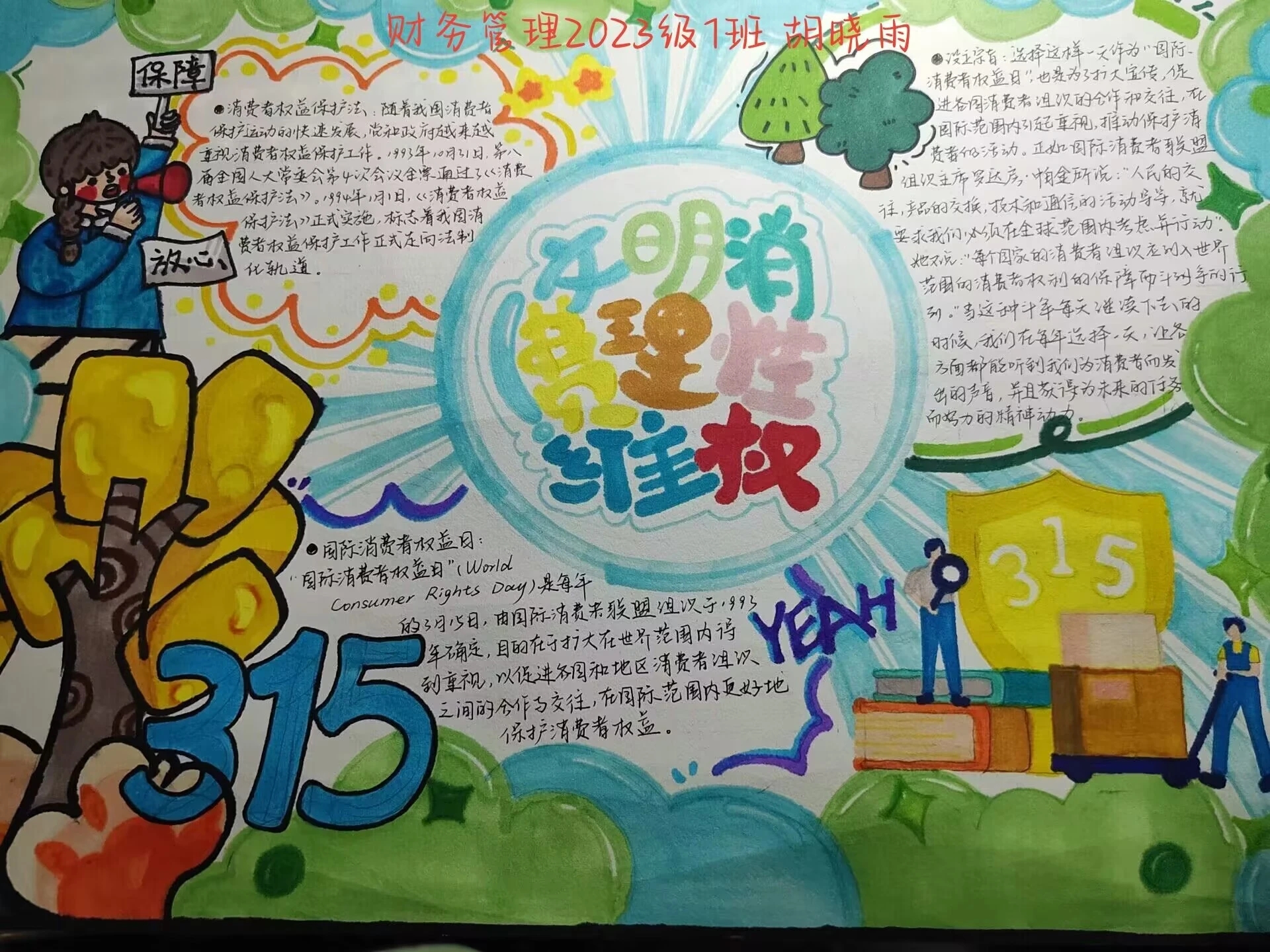 为进一步了解消费者权益日的相关知识,经济与管理系组织开展以“文明消费,理性维权”为主题作品征集活动。本次活动征集到手抄报、宣传海报等19份作品,参赛者亲手绘制和设计内容丰富、主题鲜明的手抄报和海报,向亲人、朋友、老师们宣传发放,向更多人宣传消费维权知识。根据其主题性、原创性和艺术性,总共入选三份优秀作品。现将获奖结果公布如下: