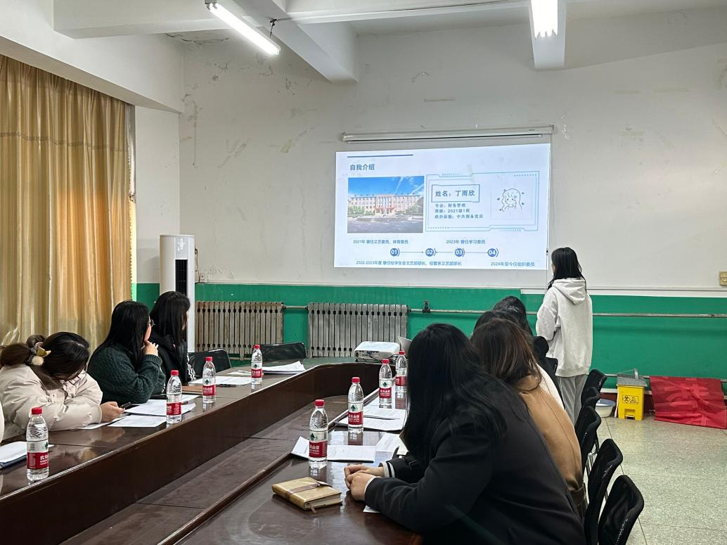 为选树优秀学生典型,激励广大学生锐意进取,3月11日上午,经济与管理系在六号教学楼226会议室举行2023年度优秀学生、优秀学生干部和先进班集体评选答辩会。本次会议特邀学生工作处谭皓恬莅临指导,系党建负责人李春、学团负责人梁晓辉、教学秘书李珣静以及系全体辅导员出席并担任评委。