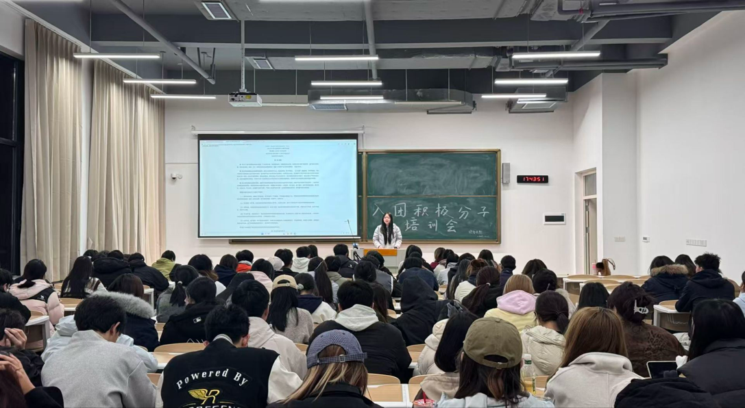 为加强入团积极分子培养教育,提高其思想政治素质和理论水平,10月22日,经济与管理学院于3A125教室召开入团积极分子培训会。经济与管理学院辅导员张睿和150余名入团积极分子参加。