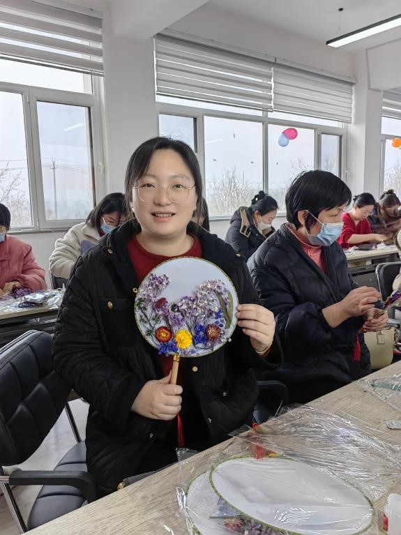 随后,老师们和社区工作者们一共学习了干花团扇DIY的制作。