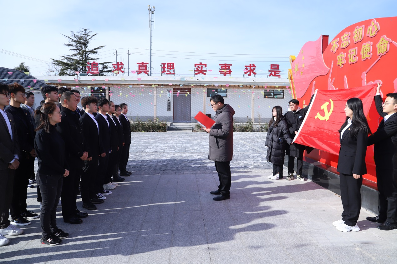 上午,全体党员来到胶东农村第一个党支部—莱西市前保驾山党支部旧址纪念馆,学习革命精神,传承革命文化。前保驾山村党支部创建后,充分发挥了战斗堡垒作用,在胶东大地播下了革命的火种,现已成为莱西市开展革命传统教育和爱国主义教育的重要基地。在此,全体党员开展实地践学暨新党员入党宣誓仪式。仪式由机关党总支副书记姜豪杰主持,在庄严的《国际歌》中拉开了序幕,王耀红宣读了新发展党员名单。姜豪杰、王忠礼为新党员佩戴了党徽。机关党总支以及人文艺术系党总支全体党员面向党旗郑重宣誓。
