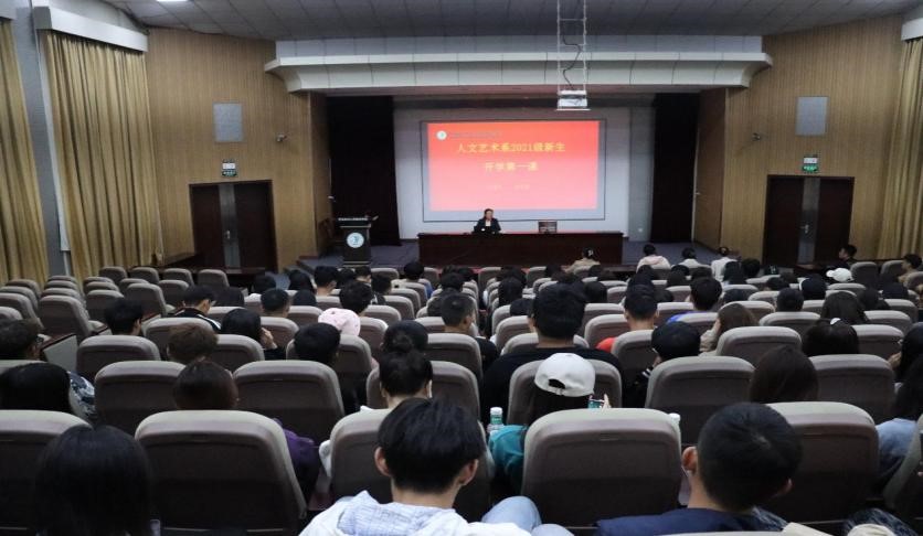 10月6日下午,在二号楼报告厅,人文艺术系党总支副书记付文珍为2021级新生讲授“开学第一课”。系学工办主任、团总支书记王耀红,系全体辅导员及2021级新生代表参加。系辅导员孙建晖主持。