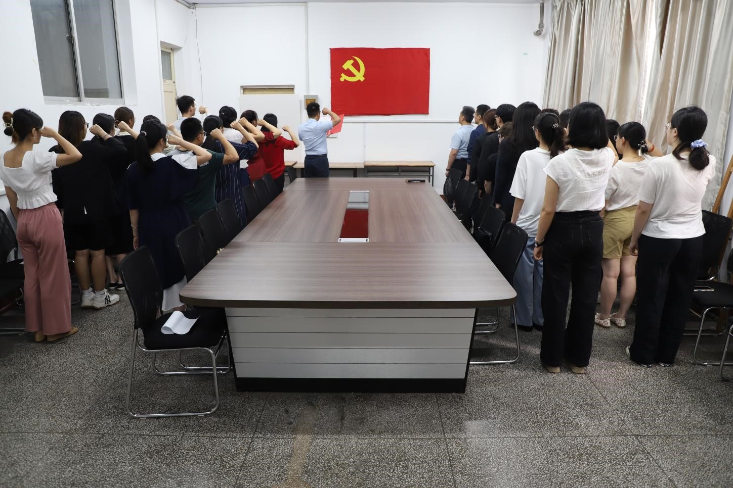会后,系全体师生党员一起重温入党誓词,面对鲜红的党旗,学生党支部组织委员赵旭光同志,带领全体师生党员用铿锵有力的誓言,表达了对党忠诚、不忘初心、砥砺前行、担当使命、为共产主义事业奋斗终身的坚定信念,激励着师生党员要坚定理想信念,提高党性觉悟。